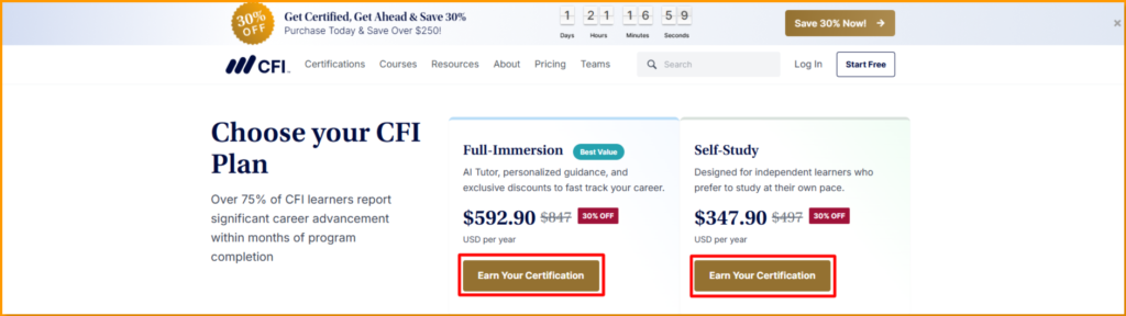 Claim this $199 discount on CFI and get the Self-Study membership for $298.20 per year instead of $497.